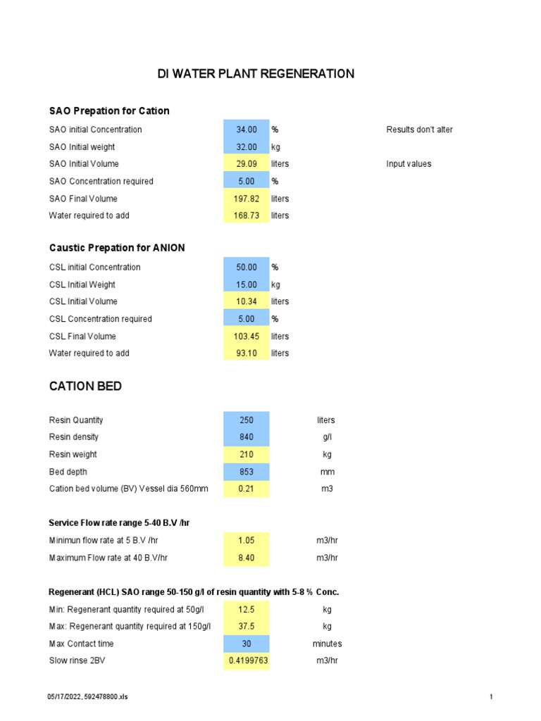 Resin Regeneration Calculation PDF Chemistry Physical Sciences